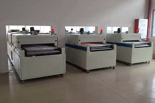 3.电器部分:电源三相 AC380V,150A,三相五线制,功率75KW,采用1.5KW台湾爱德利变频器变频调速, 配台湾爱德力1.5KW调速电机一台,奥克力牌120型减速牙箱,速比为1:120,配传动齿轮和传动链条,传动速度0.1至5米/分钟任意可调,每段炉盖配控制电箱,可控制每段的温度,每段炉腔顶部配台湾爱德力牌运风马达一台,配八寸半运风风轮,循环运风,共计:7台运风马达,每台0.37KW.使炉内温度均匀;每段炉腔内装有远红外线带罩式石英发热管9条,共计63条,500W均匀分布在配在炉腔内部,传输带底部配有隔热层,厚度为80mm,使炉外温度不烫手(温度在50度以下),每段炉腔配控制电箱和温控系统.方便设置不同的温度。